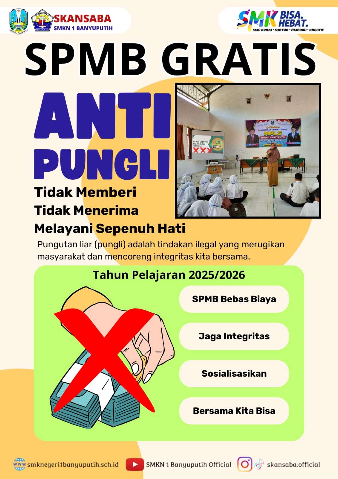 SMK Negeri 1 Banyuputih (Skansaba) berkomitmen penuh untuk menyelenggarakan Seleksi Penerimaan Peserta Didik Baru (SPMB) Tahun Pelajaran 2025/2026 d...