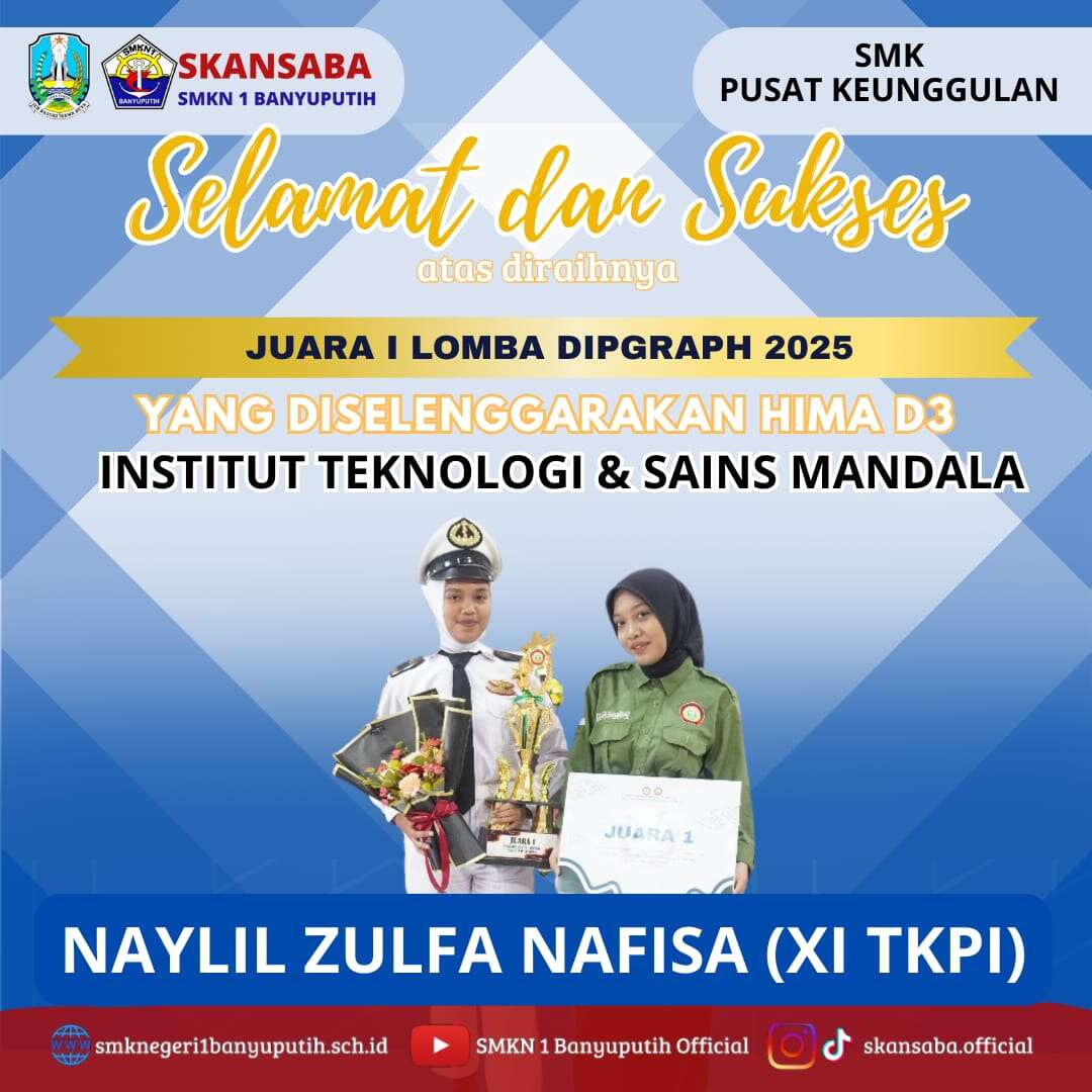 SMK Negeri 1 Banyuputih kembali menorehkan prestasi membanggakan di tingkat perguruan tinggi. Kali ini, siswi berprestasi atas nama Naylil Zulfa Nafis...